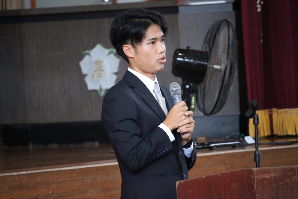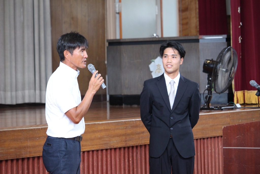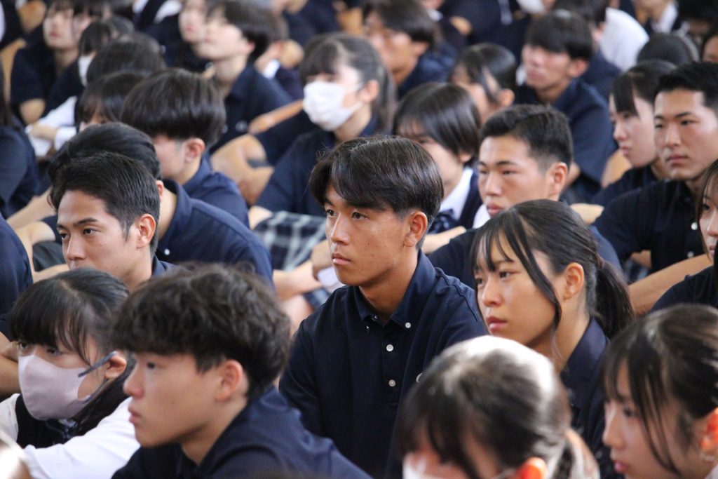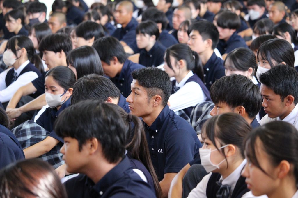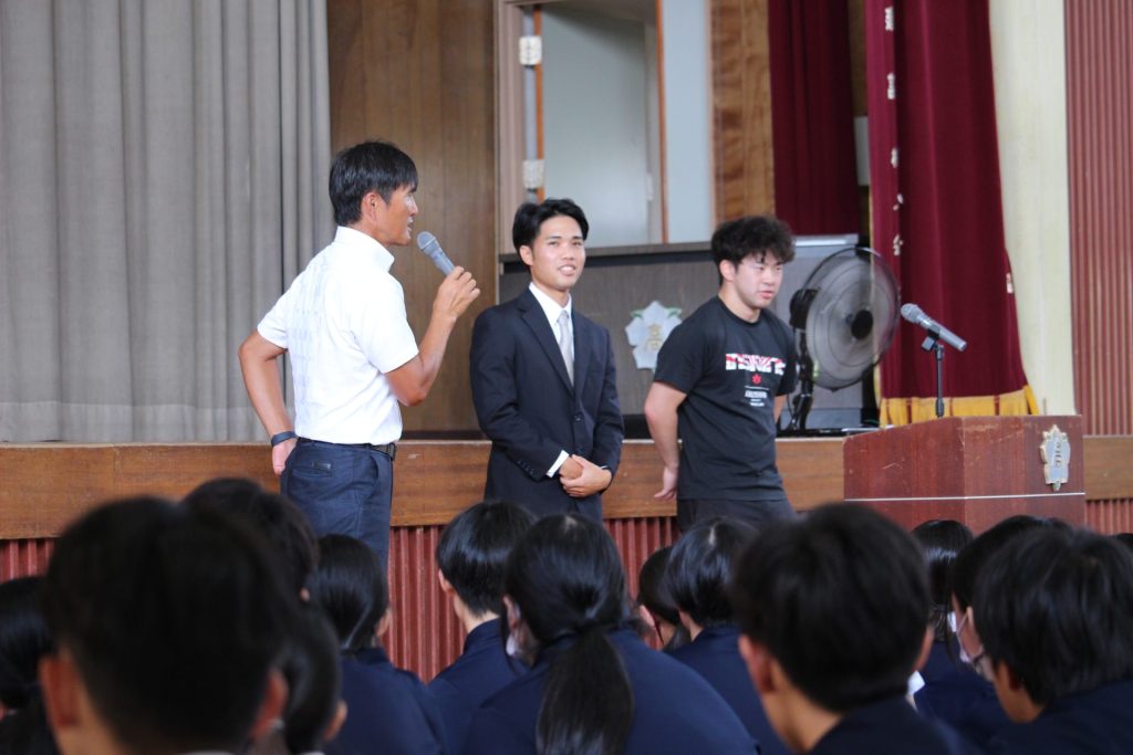 ご自身の高校生活が充実していたこと、今しかない高校生活を生徒たちには思いっきり楽しんでほしいということを伝えていただきました。本校の生徒指導部長との質問の受け答えをしていただき、伝えていただいたことはしっかり生徒たちへ届いたことでしょう。