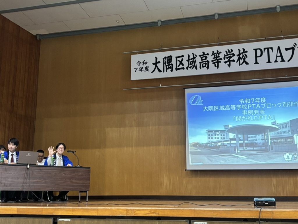 本校の事例発表をいたしました 学校全般 投稿者 作成者: kanoya-chuo 投稿日 2025.10.25 10月25日(土)13:00〜大隅区域PTAブロック別研修会が志布志高校でありました。本校が事例発表でPTA会長の高田さんと鈴木先生が本校の紹介とPTAの活動「開かれたPTA」について発表しました。