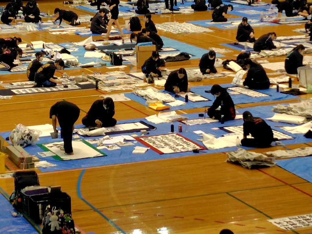 会場は西原商会アリーナ、今回は修学旅行やインフルエンザの欠席で、例年より100名近く減でしたが、45校313名が参加していました。期末考査期間と重なり、部員は大変でしたが、2時間内でキッチリ作品を仕上げました。