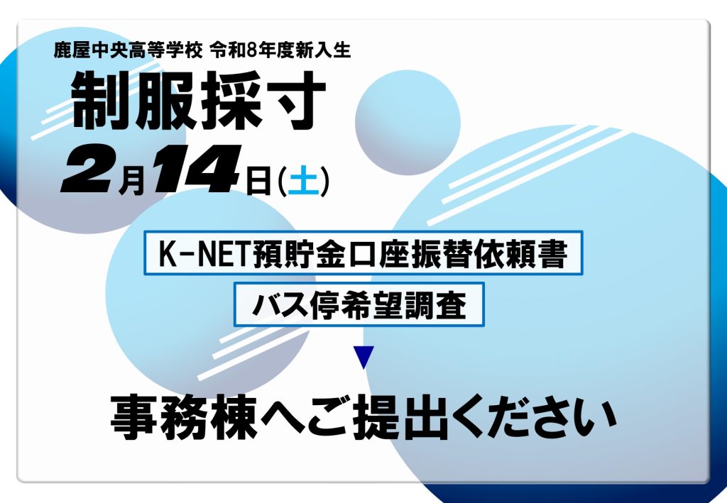 本校にて令和8年度新入生の制服採寸を実施いたします。
