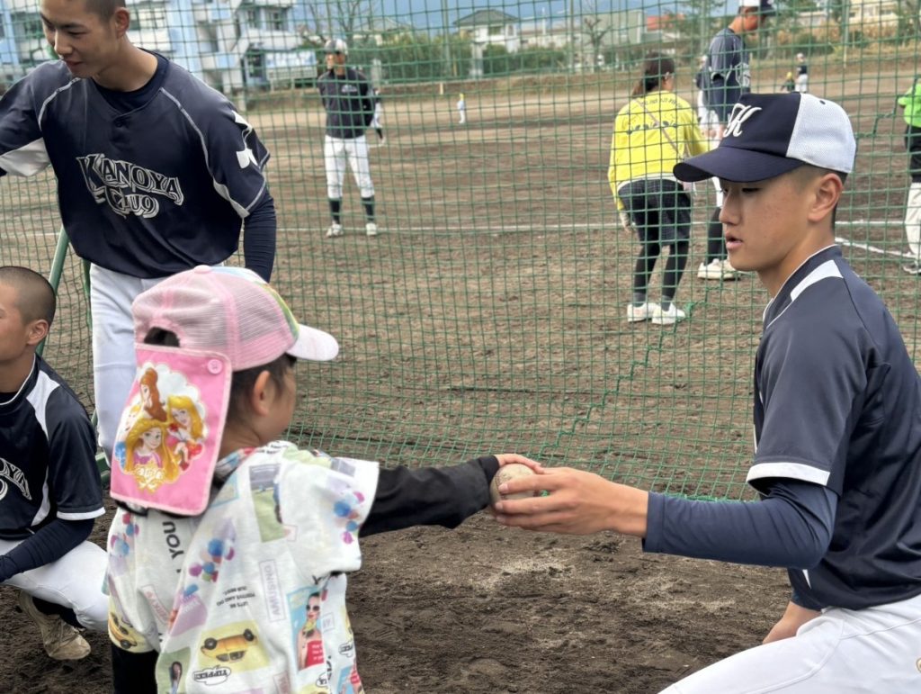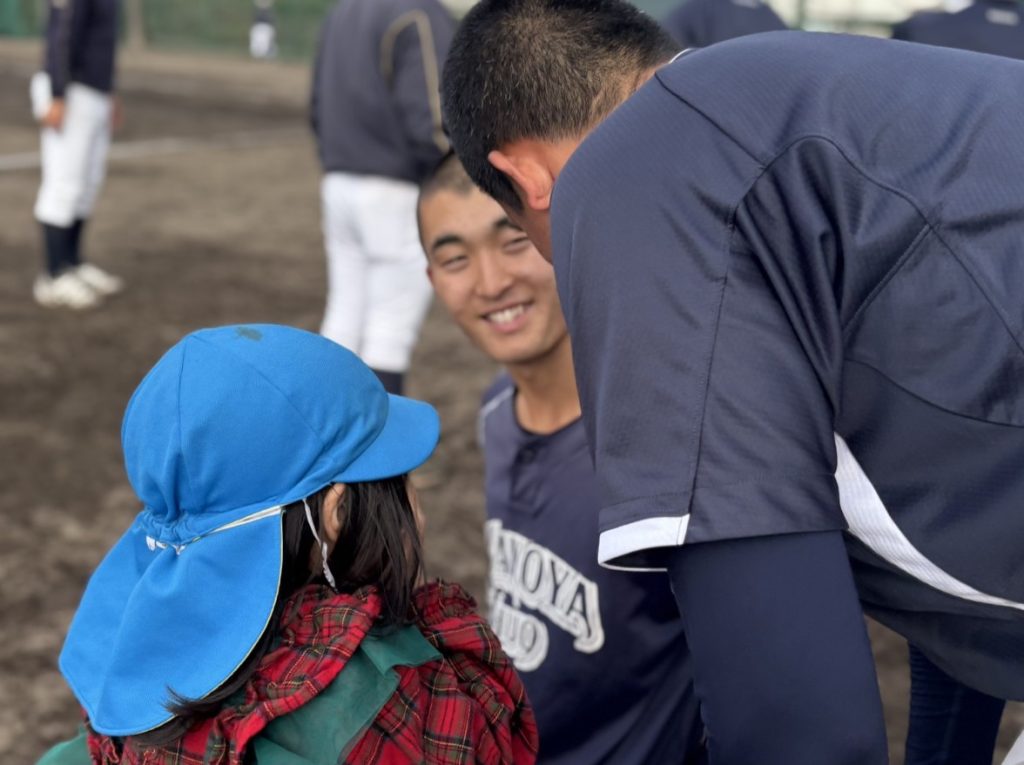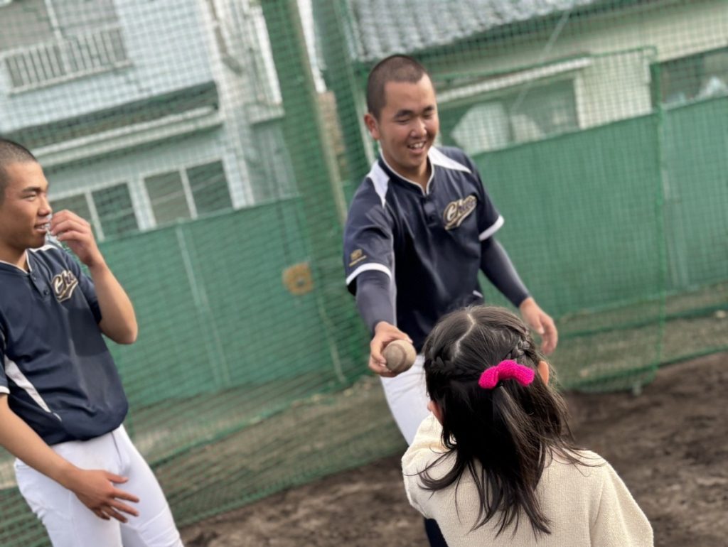 園児との再会 部活動 硬式野球部 投稿者 作成者: kanoya-chuo 投稿日 2026.2.26 【野球部見学】2月26日(木)第一鹿屋幼稚園様が来校されました。 前回のティーボール教室以来の再会となり園児さんも本校生徒も楽しく触れ合うことができました。 実際の野球の試合形式の練習も見ることができ、優しく遊んでくれたお兄さんたちの真剣なプレーに驚きつつ感激の声を上げる様子もありました。 自分たちのさらなる成長にもつながるいい機会をいただき誠にありがとうございました。