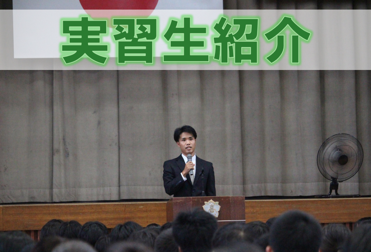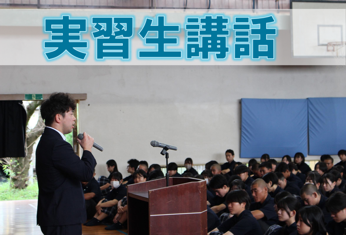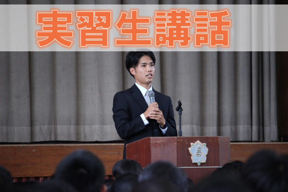 29日(月)から実習中の宮里先生に自身の高校生活を振り返りつつ、本校生徒たちへ講話をしていただきました。